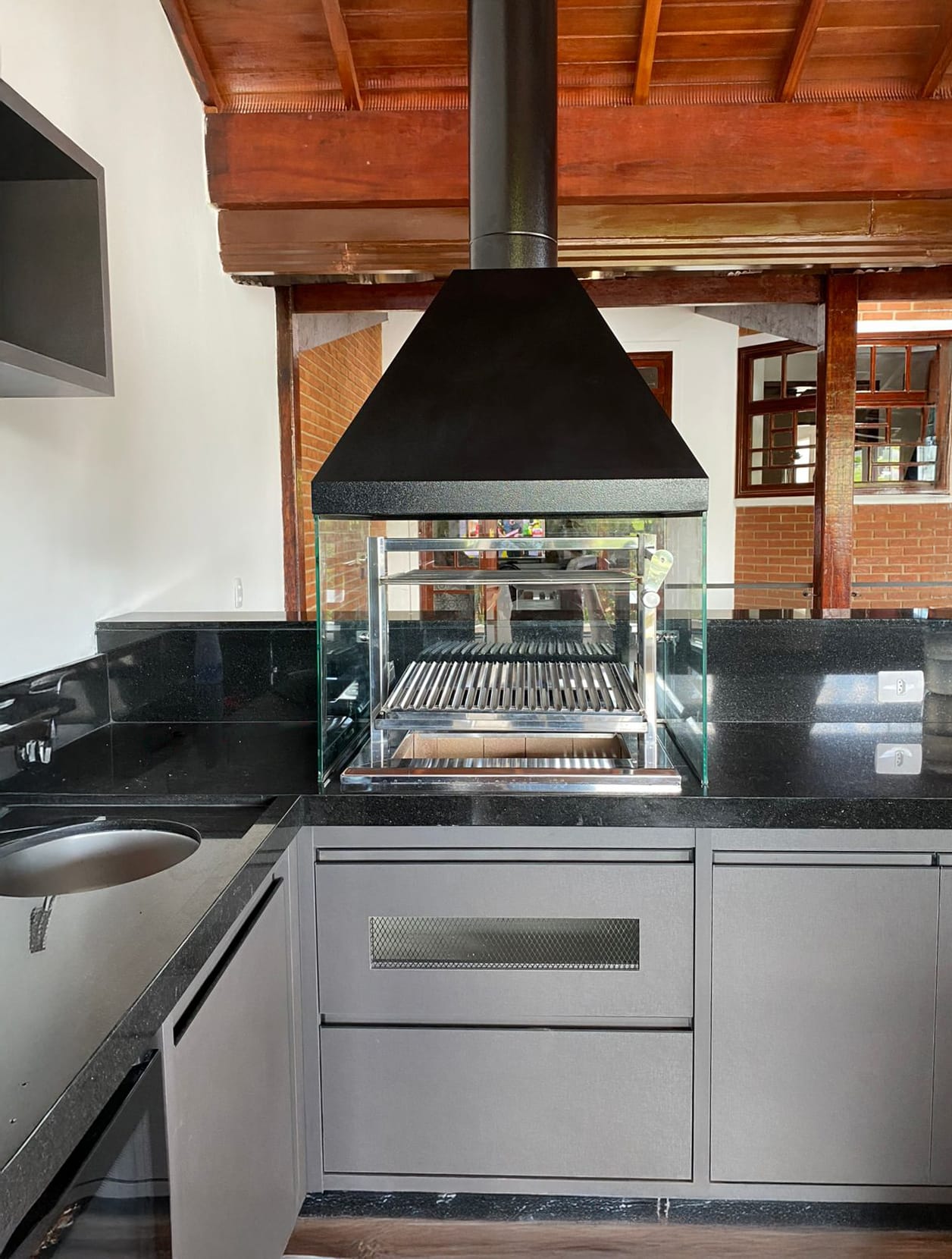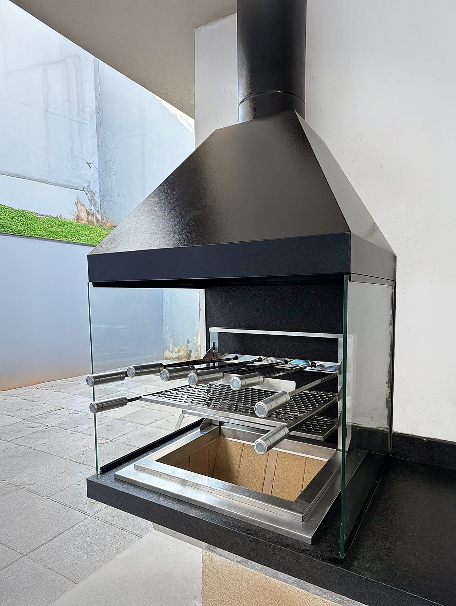 Outra vantagem desse tipo, ao contrário da churrasqueira de alvenaria, é a variedade de tamanhos: você certamente conseguirá uma churrasqueira ideal para o espaço que tem disponível.l
